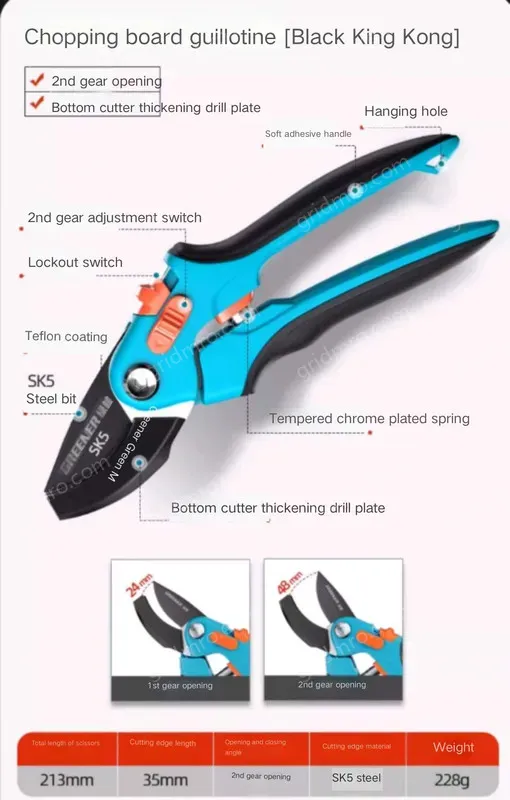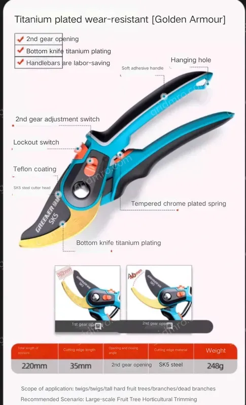Upgraded design, two-level opening adjustable, thick branches/thin branches, light and fast cutting