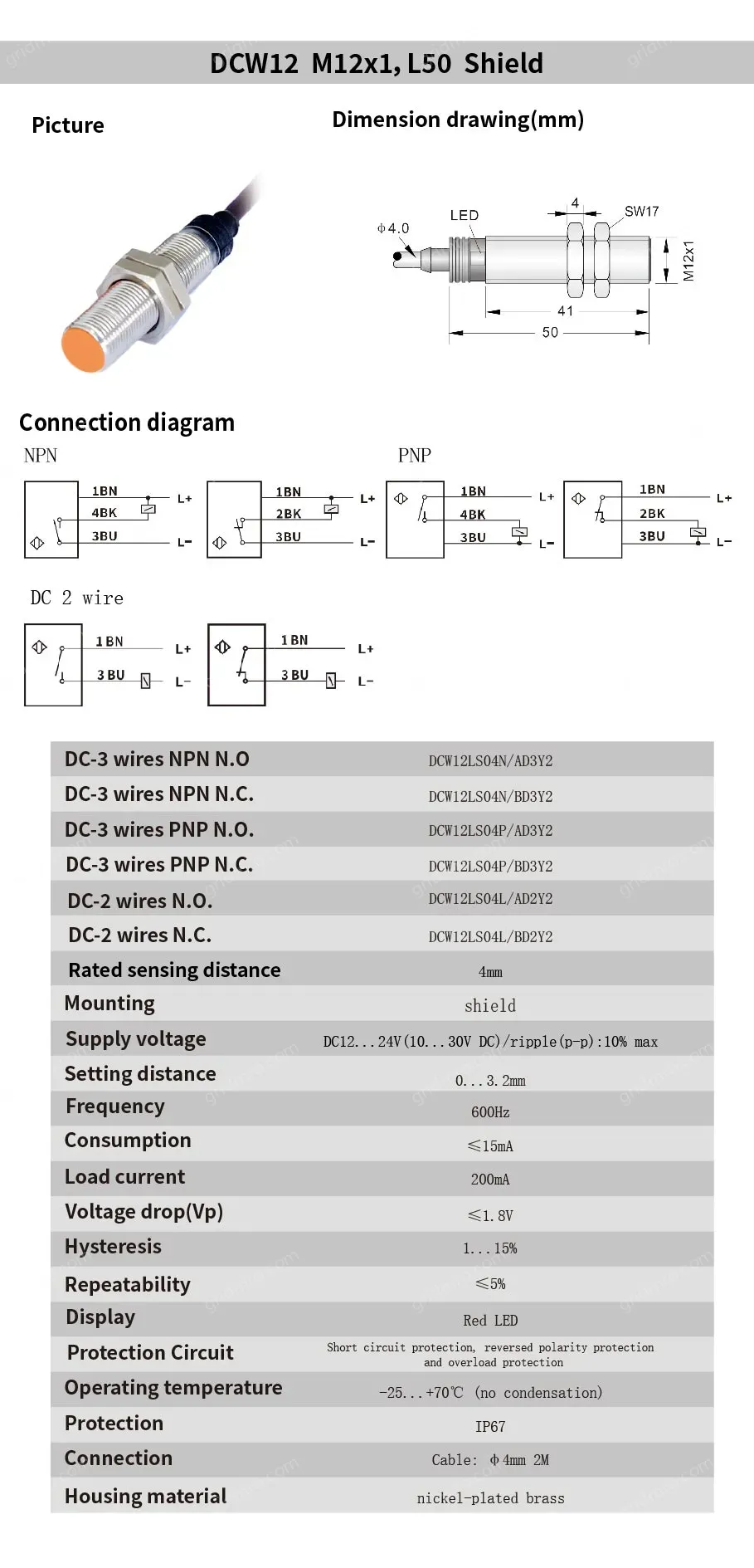 Model: DCW12LS04N/AD3Y2 DC-3 wires NPN N.O.